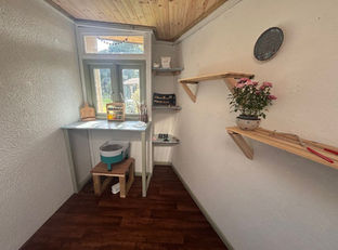 What was a dark cramped cold shed has been completely transformed into a light spacious pottery room.